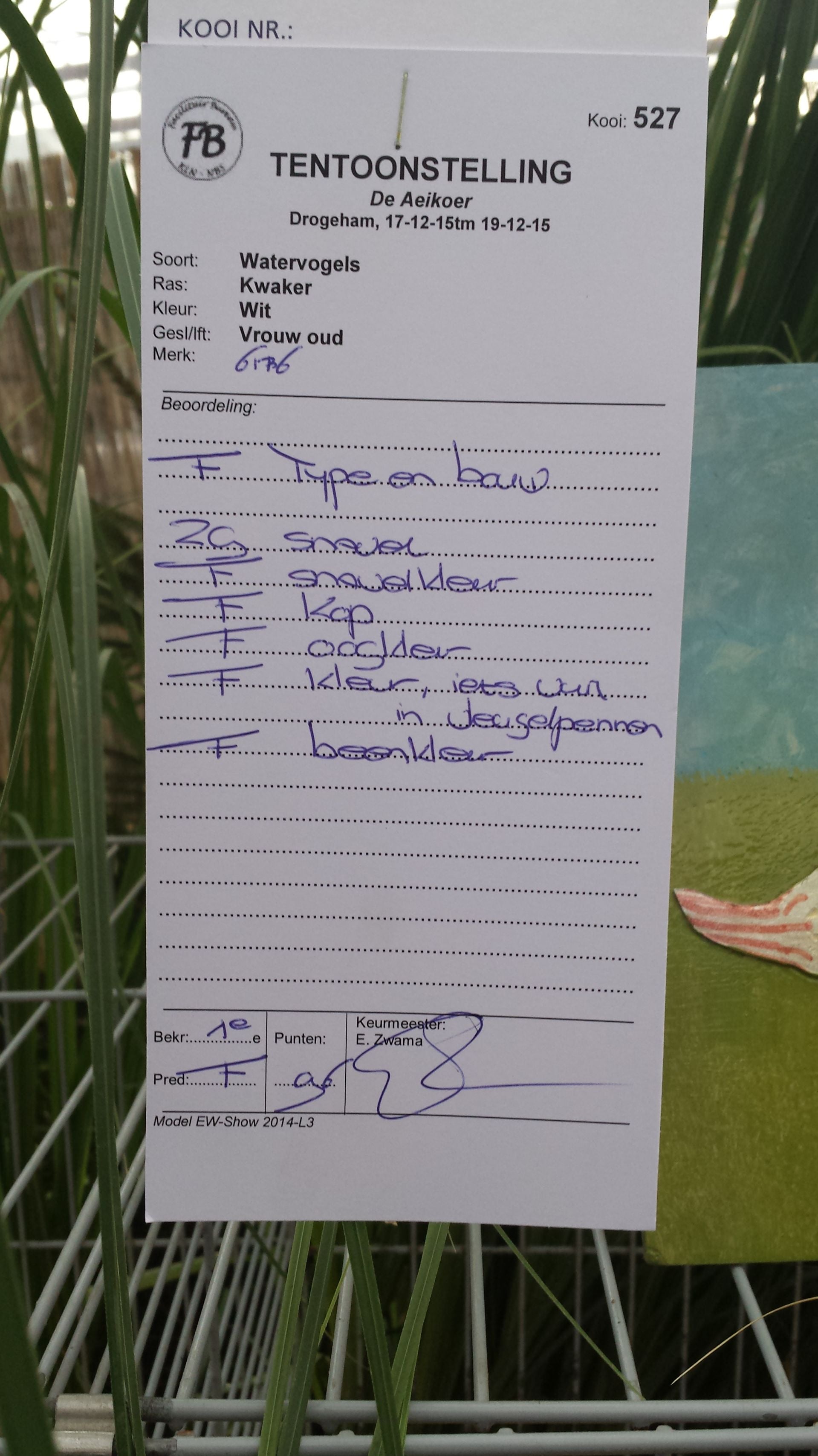 Beste watervogel: Kwaker wit, 1F96, eign. J. Meindertsma