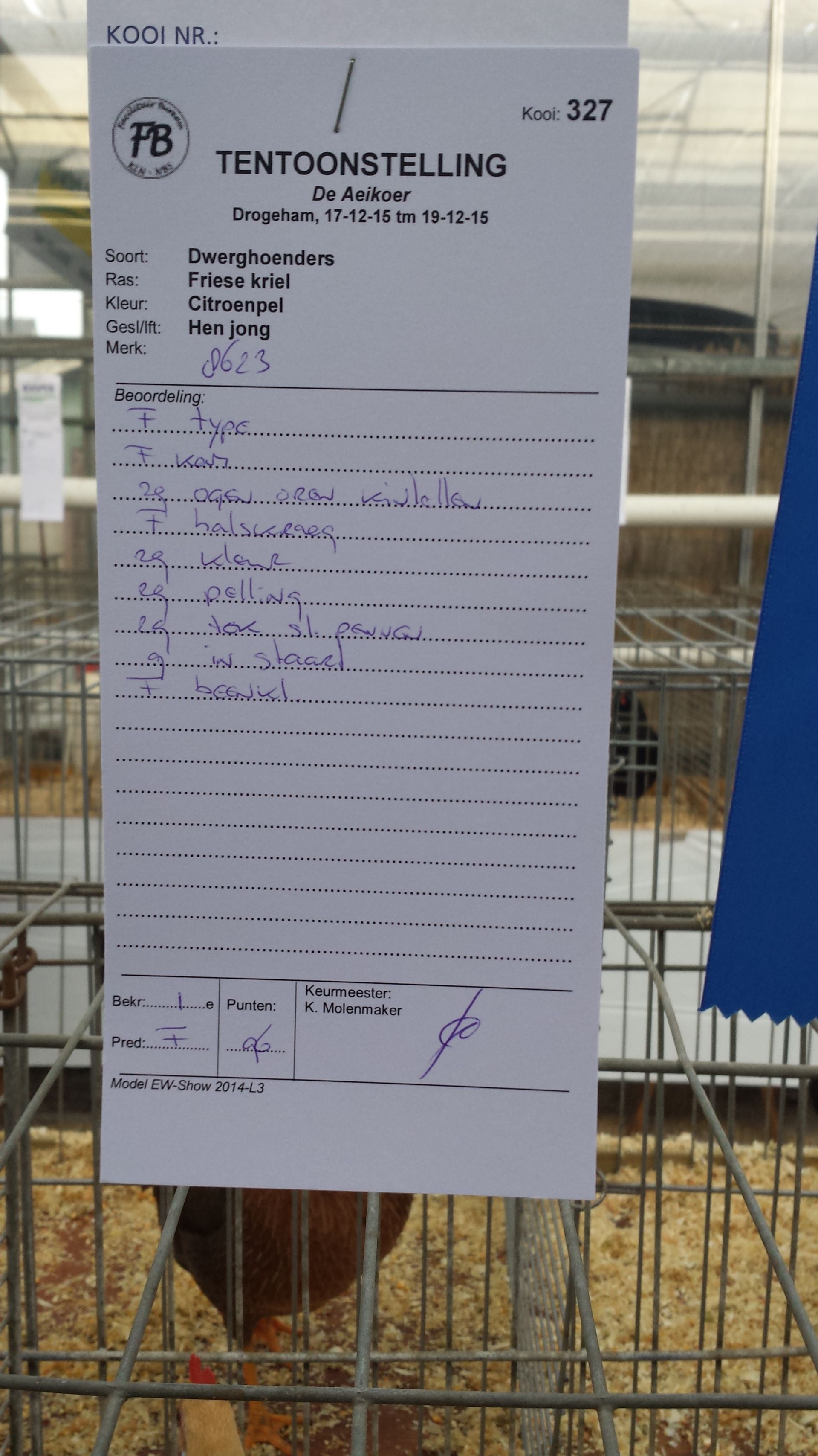 Mooiste dwerghoender op 1 na: Friese kriel citroenpel, 1F96, eign R. Paulus